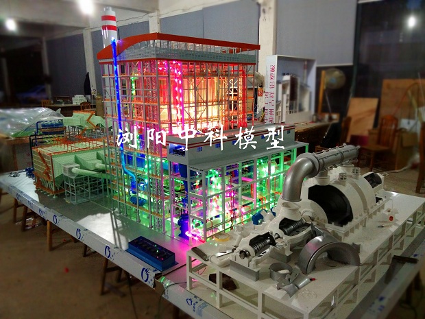 2、1000MW超超臨界汽輪機及系統(tǒng):1000MW汽輪機為上海汽輪機有限公司生產(chǎn)的1000MW超超臨界、一次中間再熱、單軸、四缸四排汽、雙背壓、凝汽式汽輪機,型號為N1050-27/600/600(TC4F);模型按比例縮小設計加工;汽輪機高中低壓缸上缸蓋結(jié)構透明,電動演示,蒸汽管道采用LED燈光流動演示;